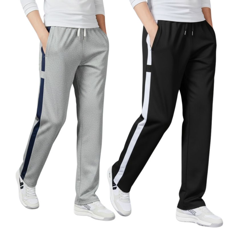 2 Pics Men’s Straight-Leg Stripe Joggers(Ash,Black)