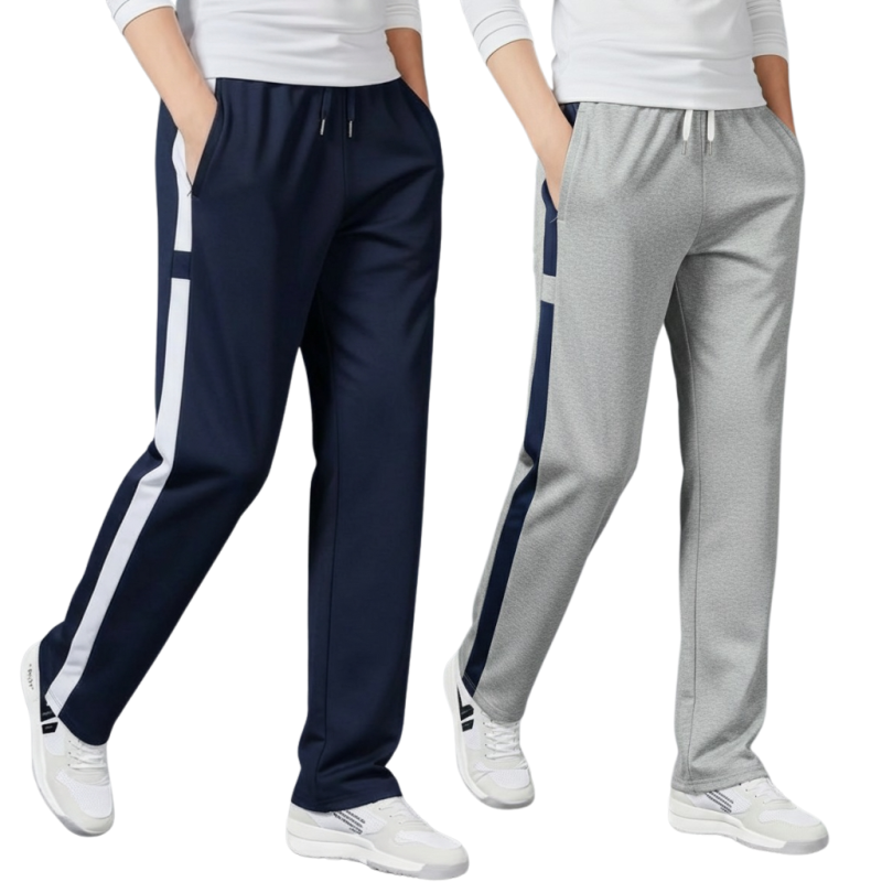 2 Pics Men’s Straight-Leg Stripe Joggers(Blue,Ash)
