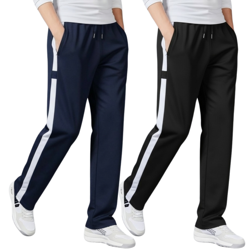 2 Pics Men’s Straight-Leg Stripe Joggers(Blue,Black)