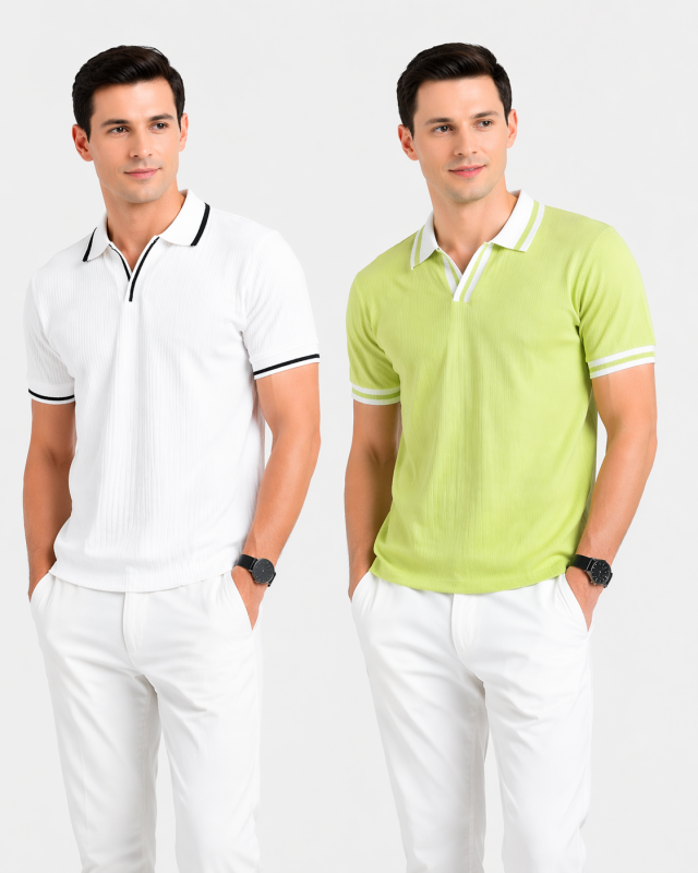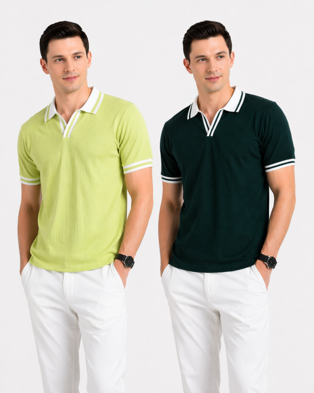 2 Pics Premium Waffle Zipper Polo Shirt(Olive,Black)