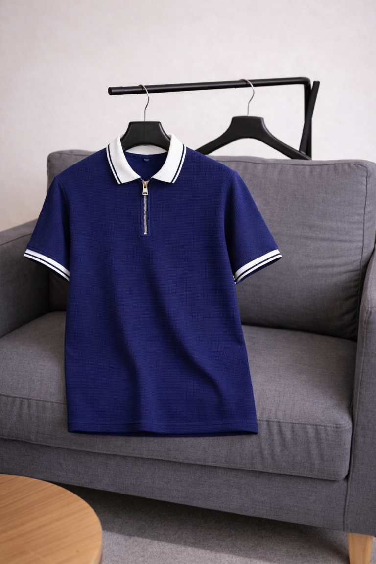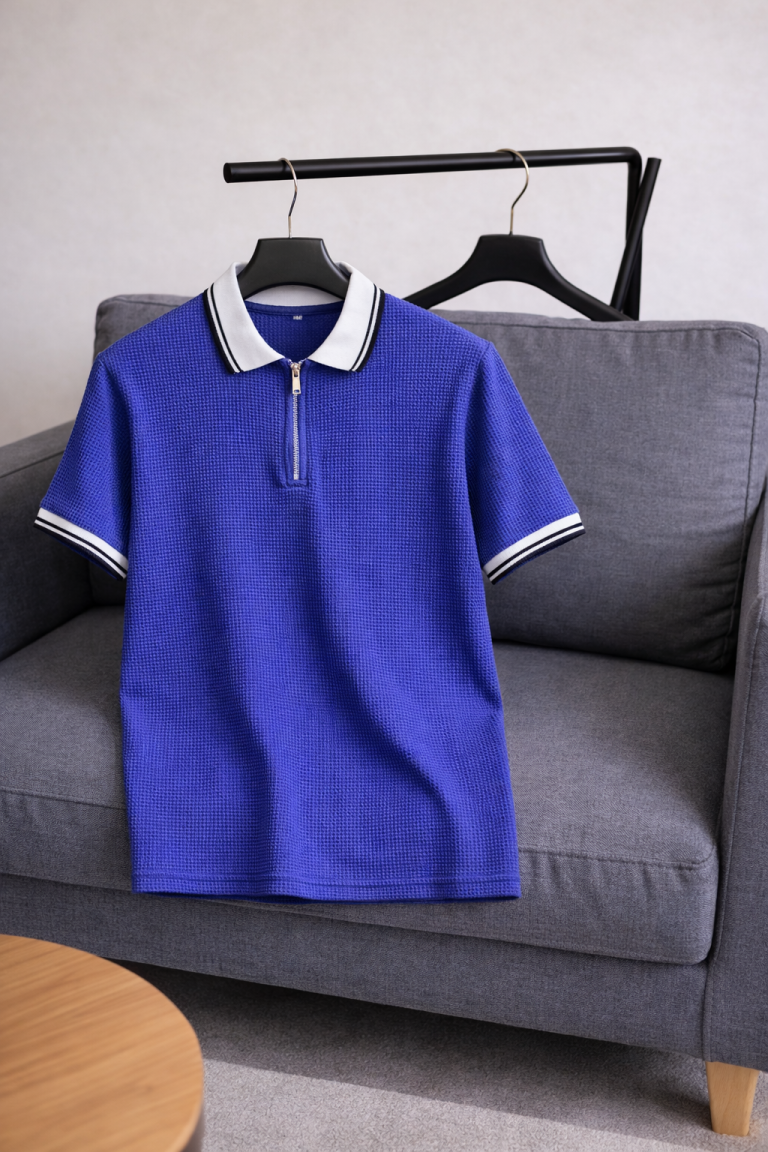 Premium Waffle Zipper Polo Shirt(Royal Blue)