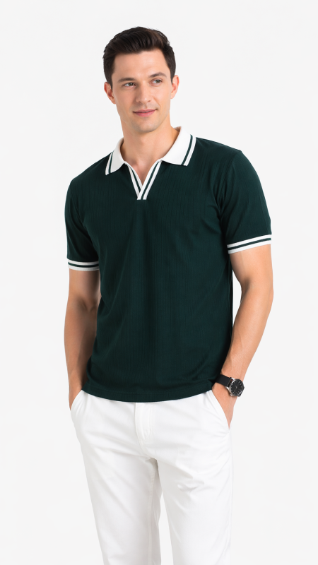 CHINA CELLY KNIT FABRIC POLO-GREEN