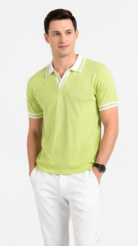 2 PICS CHINA CELLY KNIT FABRIC POLO-GREEN,LAMON