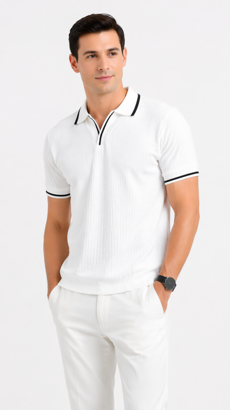 CHINA CELLY KNIT FABRIC POLO-WHITE
