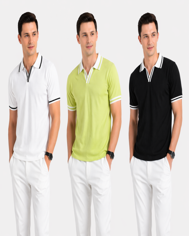 3 PICS CHINA CELLY KNIT FABRIC POLO-LAMON,BLACK,WHITE