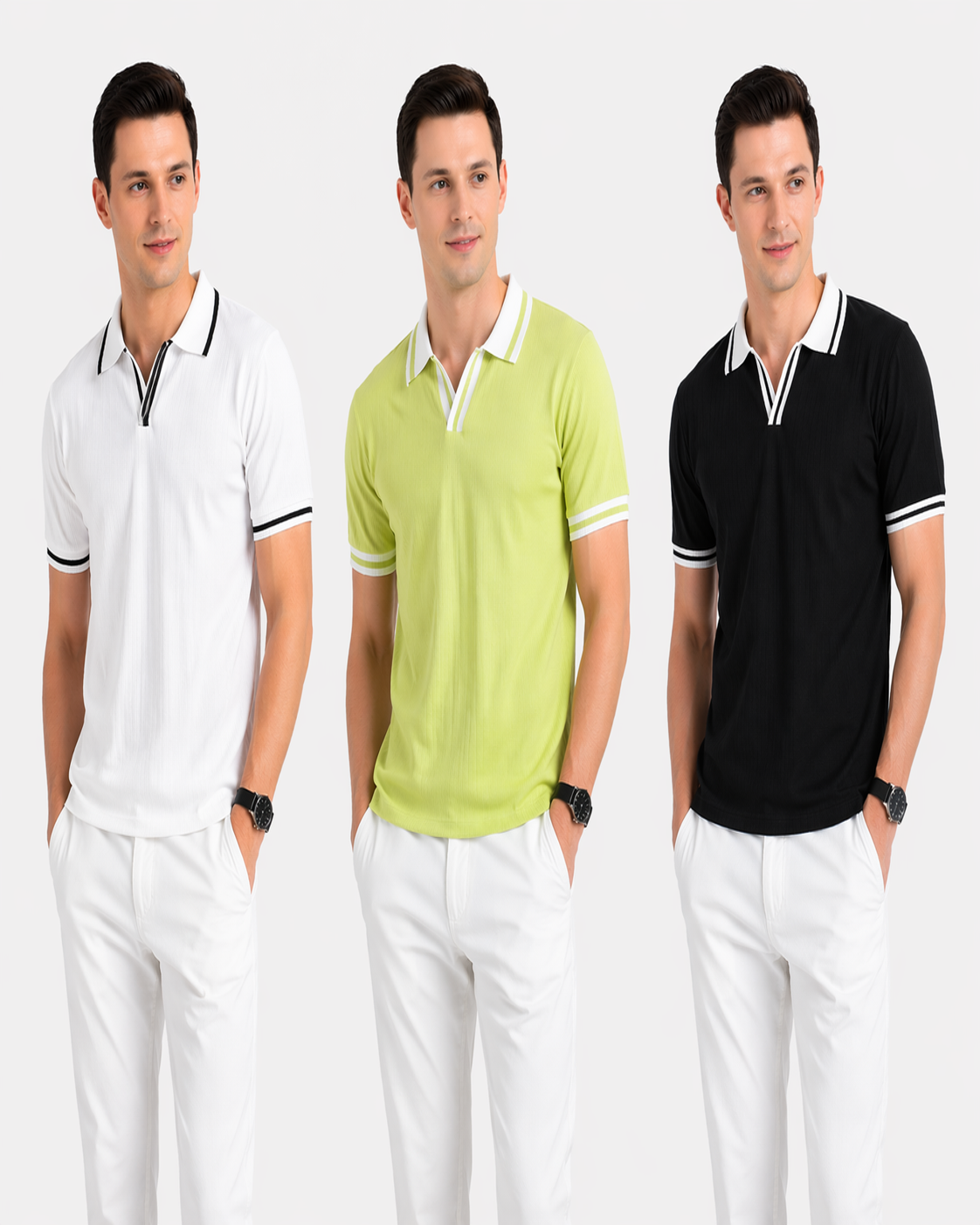 3 PICS CHINA CELLY KNIT FABRIC POLO-LAMON,BLACK,GREEN