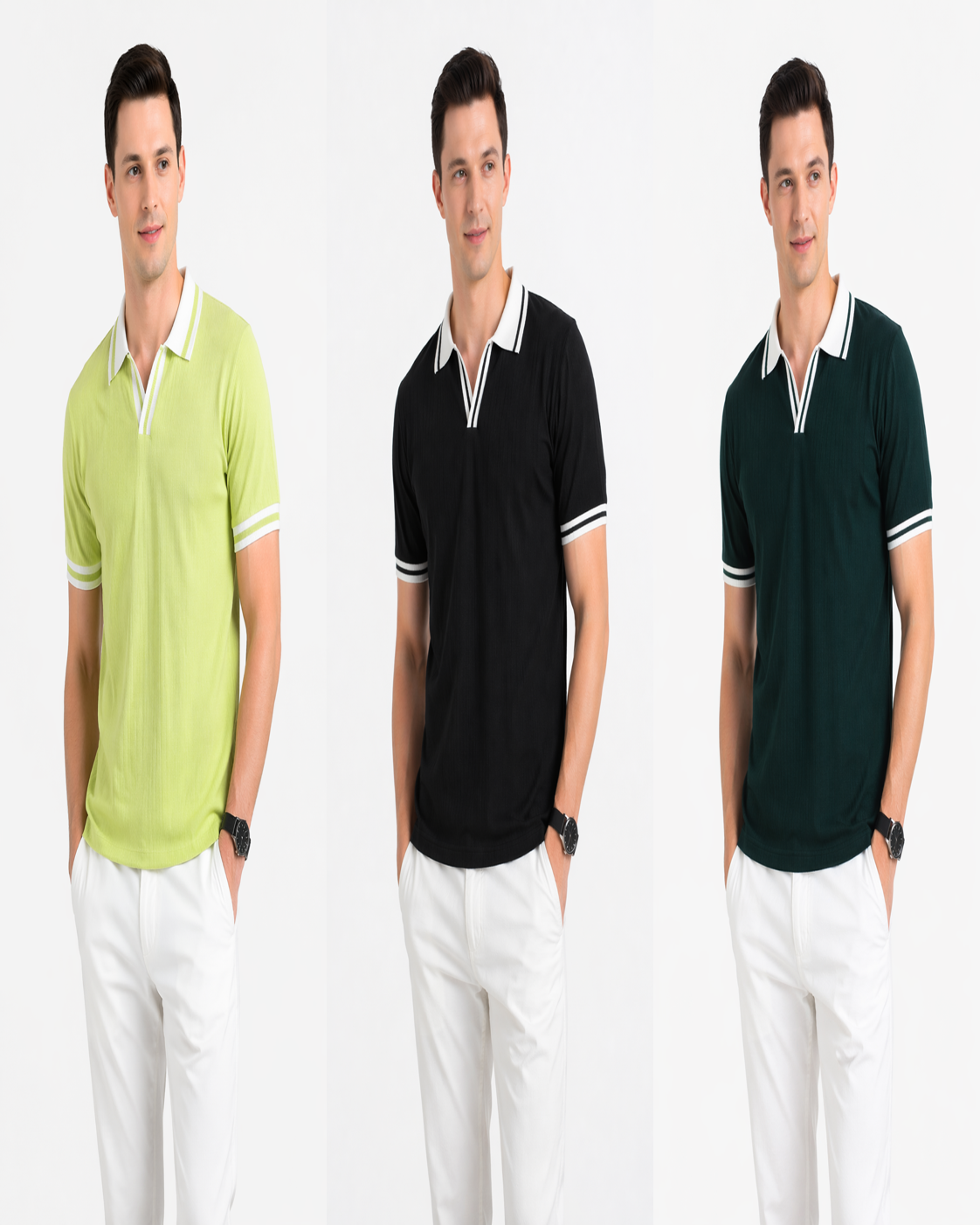 3 PICS CHINA CELLY KNIT FABRIC POLO-LAMON,BLACK,GREEN