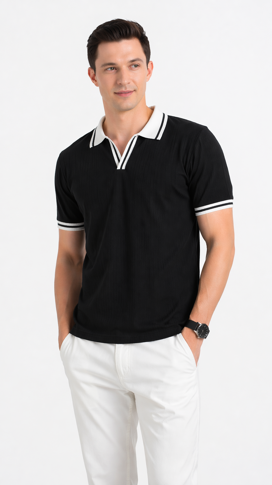 CHINA CELLY KNIT FABRIC POLO-BlACK