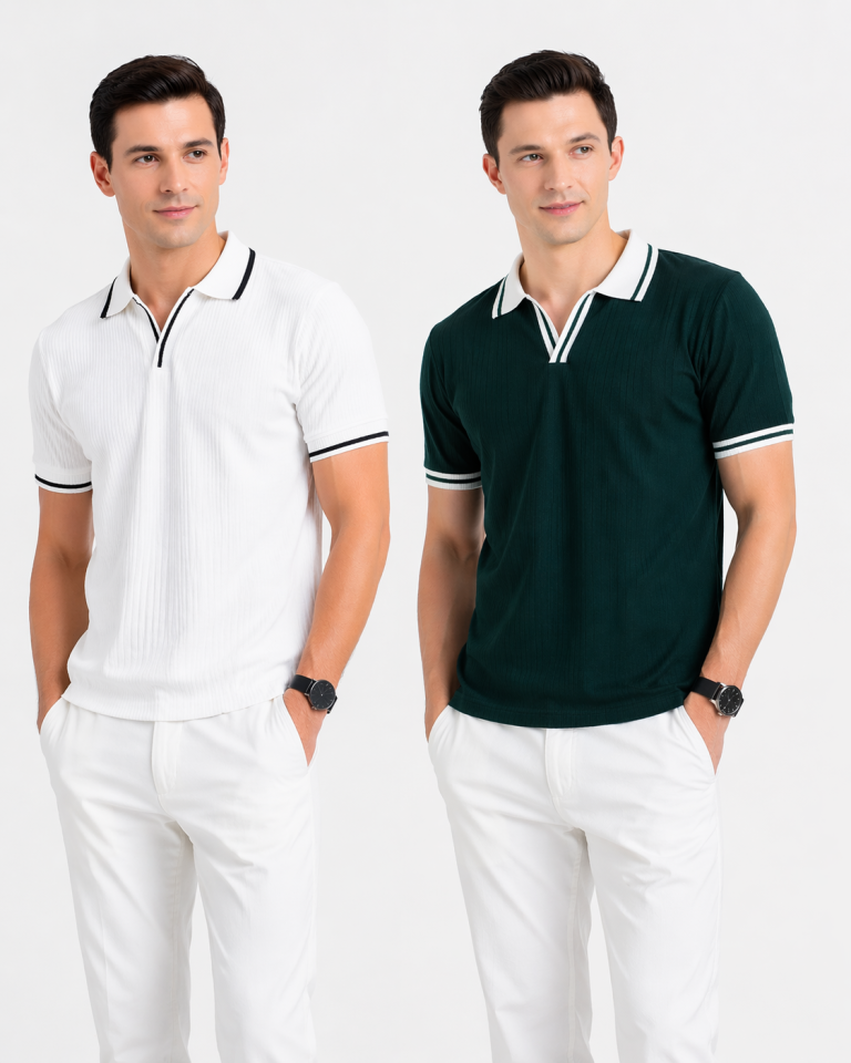 2 PICS CHINA CELLY KNIT FABRIC POLO-WHITE,GREEN