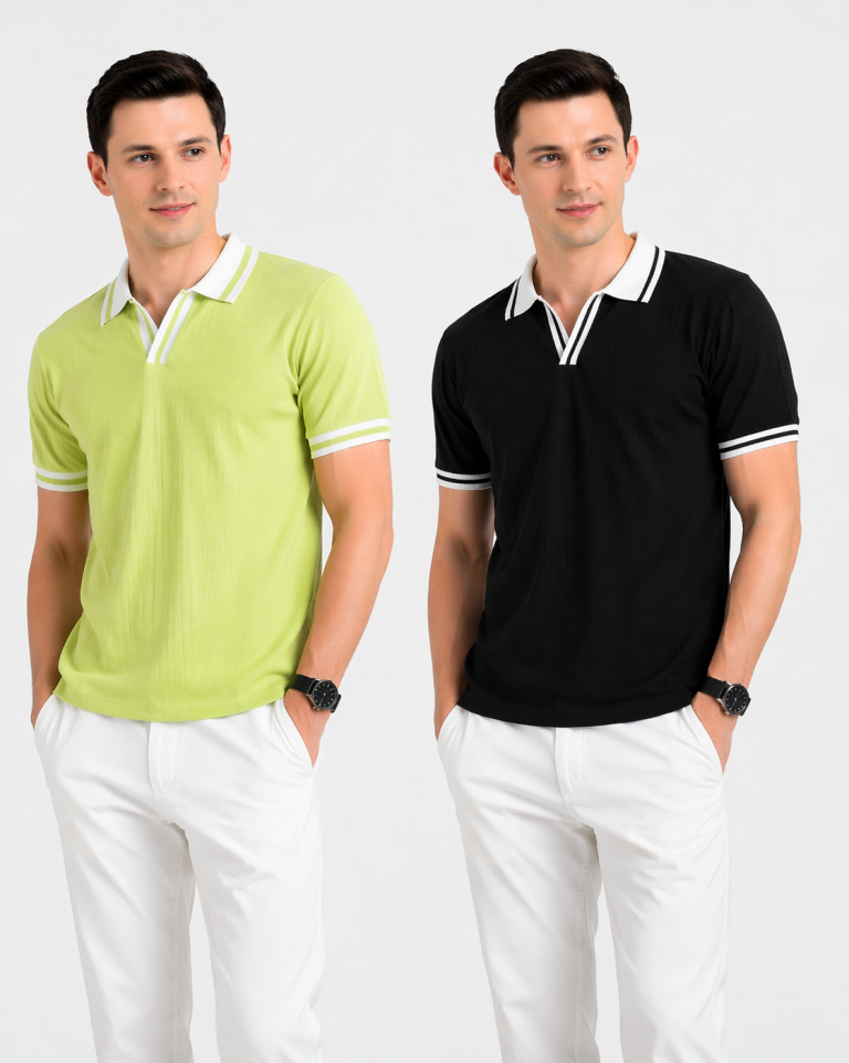 2 PICS CHINA CELLY KNIT FABRIC POLO-GREEN,BLACK